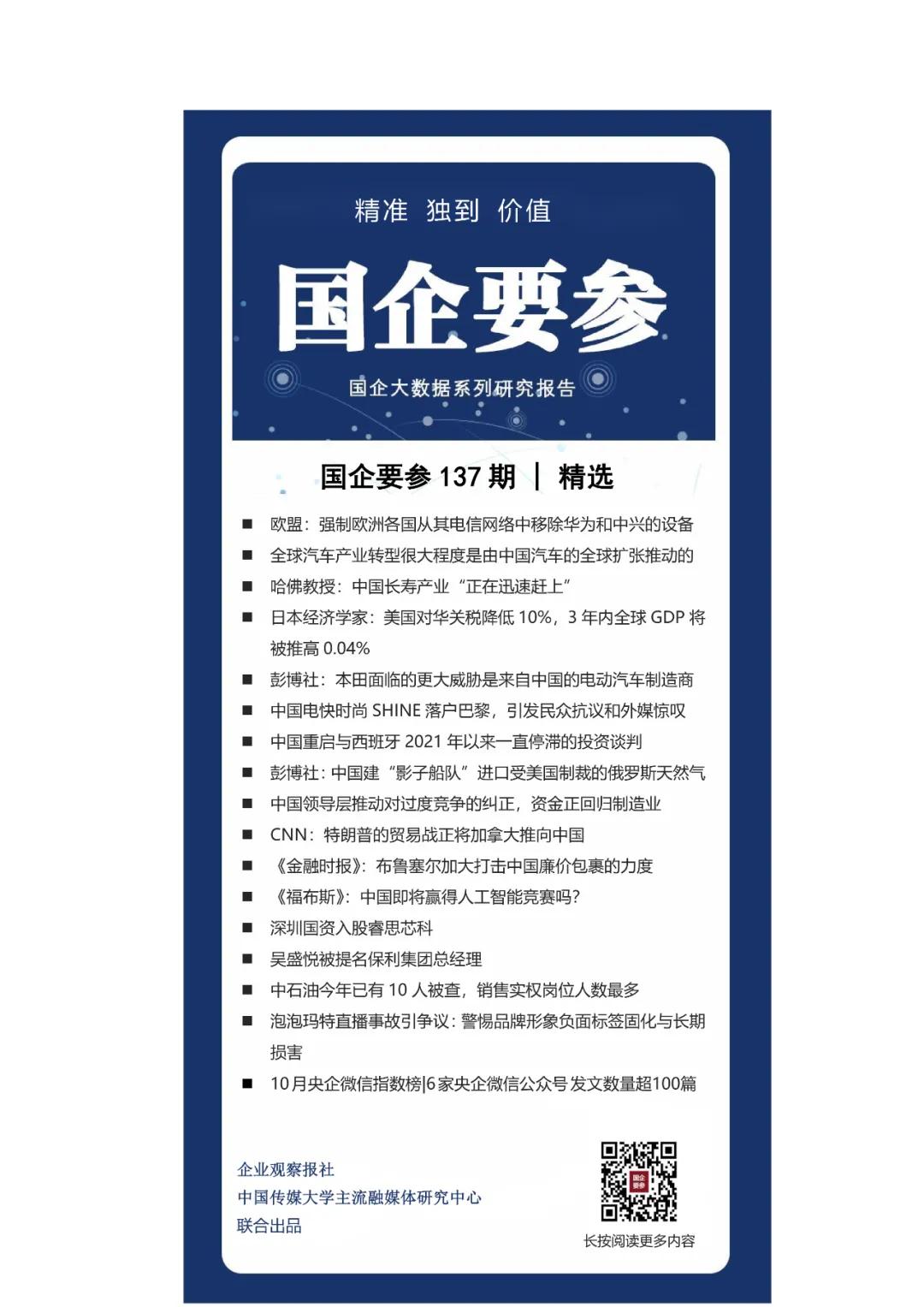 企观国资是企业观察报社官方微信公众号。《企业观察报》是由国务院国资委指导、中国企业改革与发展研究会主管主办的全媒体平台,被国务院国资委认定为“国资国企自有舆论平台”,致力于以专业化、市场化、国际化视角关注报道中国企业改革发展。